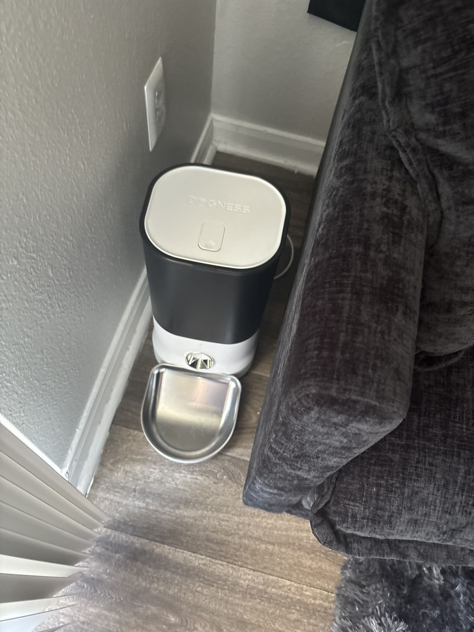 It has a QR code for you to add your voice to it , it’s an automatic dog feeder
