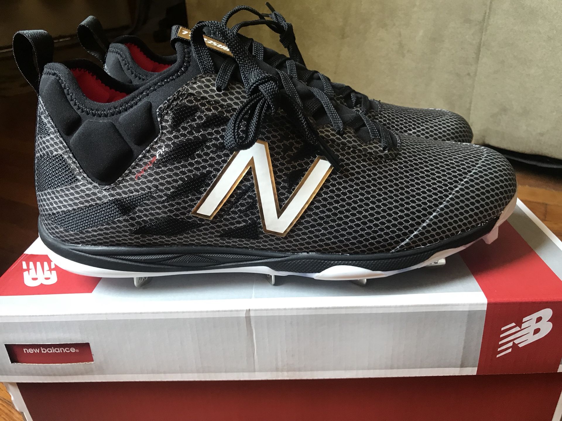 Brand new, never been worn by anyone. Men's size 13 wide black with a built in grey carbon mesh stylish design with gold accents. Exclusive and nothing but the best for the inner pro in you. Directly from New Balance's top of the line baseball technology shoe designs. Specified for everyone, but used by top professionals in the big leagues for a reason. These baseball cleats are the most comfortable shoe out there, with amazing agility and quickness as one of the lightest cleats ever. With new cleat positioning and 3 added molded cleats for a total of 12 cleats per shoe for pivotal and extremely aggressive running, sprinting, cutting and chasing all over the baseball diamond. Paid $143 after taxes with the receipt in hand. Selling for $85. No deliveries, trades, and no low ballers you will get ignored. Serious buyers only please, let's not waste both of our times. First person with $85 takes them home, these will not last.... Have a great day!