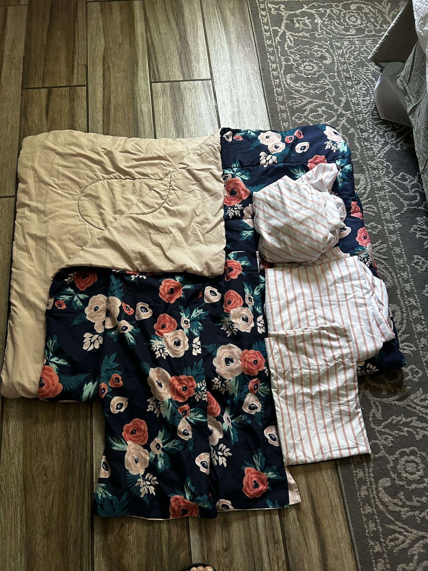 Comes with comforter, fitted sheet flat sheet, and two shams and two pillowcases.