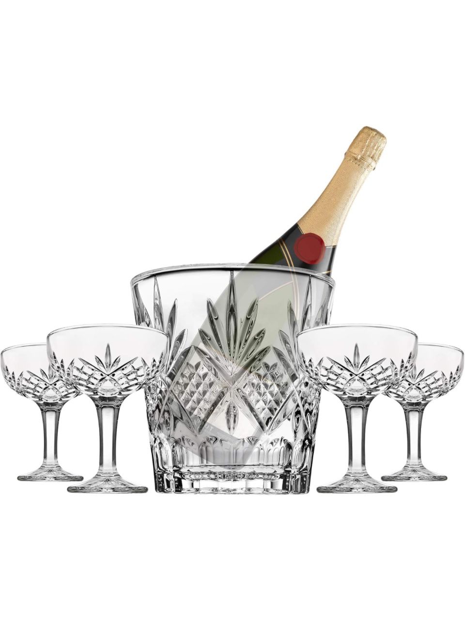 Godinger Champagne Coupe and Ice Bucket Cocktail Glasses Set - Dublin Barware Mixology Collection