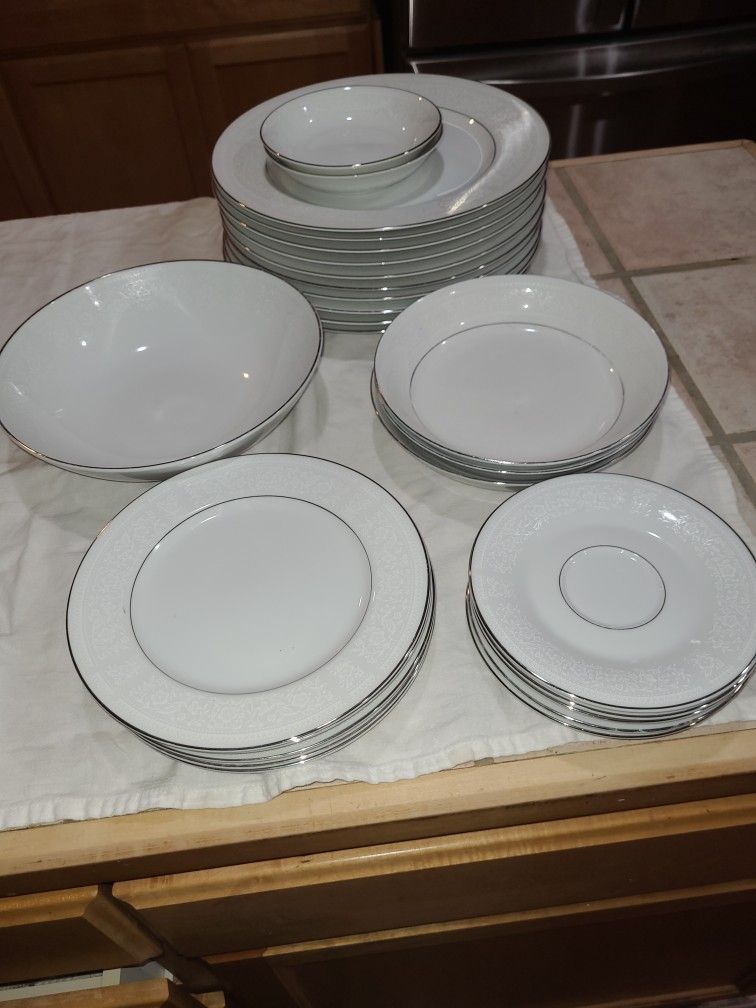 VINTAGE CLUNY LACE CHINA #4911 MADE IN JAPAN 10-DINNER PLATES. 5-SALAD PLATES. 5-SAUSERS 3- BOWLS 2- DESSERT BOWLS 1- SERVING BOWL. $55.00 OBO FOR THE WHOLE LOT. MAKE AN OFFER YOU CAN'T OFFEND ME. CHECK OUT MY OTHER COOL ITEMS.