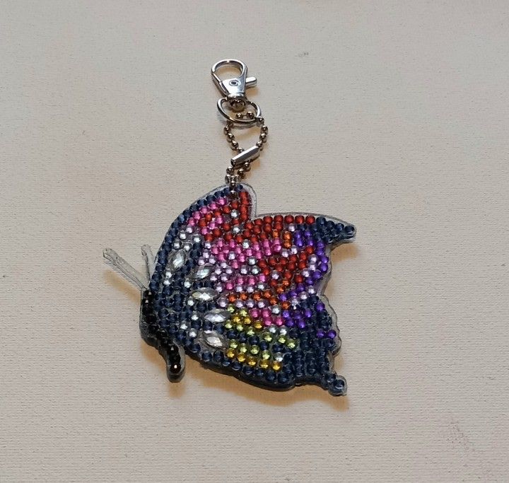 Beautiful Handmade Blingy Dark Blue Multicolored Butterfly Keychain.
