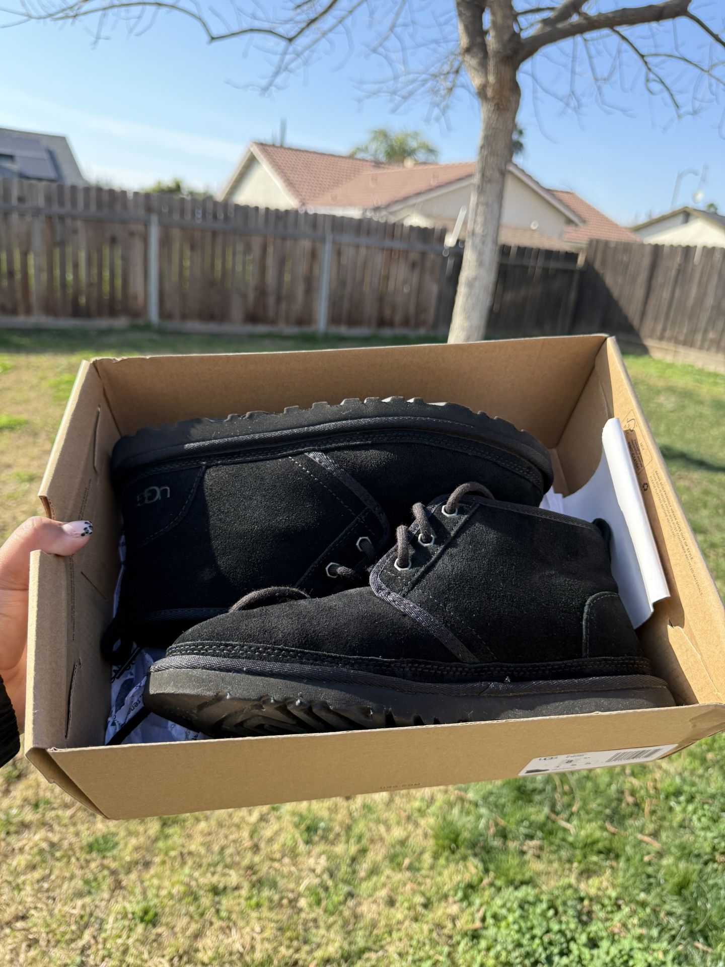 Brand new in box Ugg boots in black suede available for $130! They’re a size 8 in women. I’m located in Lemoore, CA but I do drive to Hanford, Visalia, & Tulare on a daily basis. I do porch pick ups & delivery’s for a fee. I only accept cash. Message me if interested! 💌