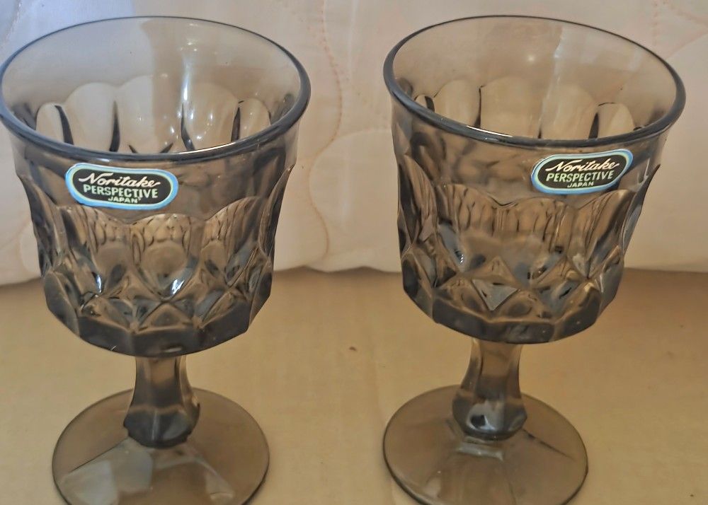 Set of 8 Noritake Perspective Sepia Wine Glasses 5” Japan