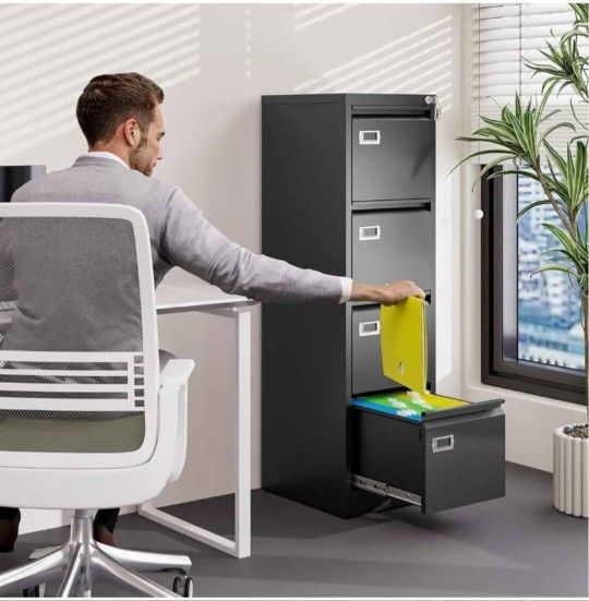 4 Drawer File Cabinet with Lock Metal Vertical File Cabinet Office Home Vertical File Cabinet for A4