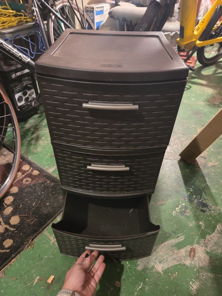 I'm moving out of state! Check out my other items for sale Lots of plants for sale too! Over 200+ 3 drawer plastic brown dresser. Used but been in storage for years and looks great