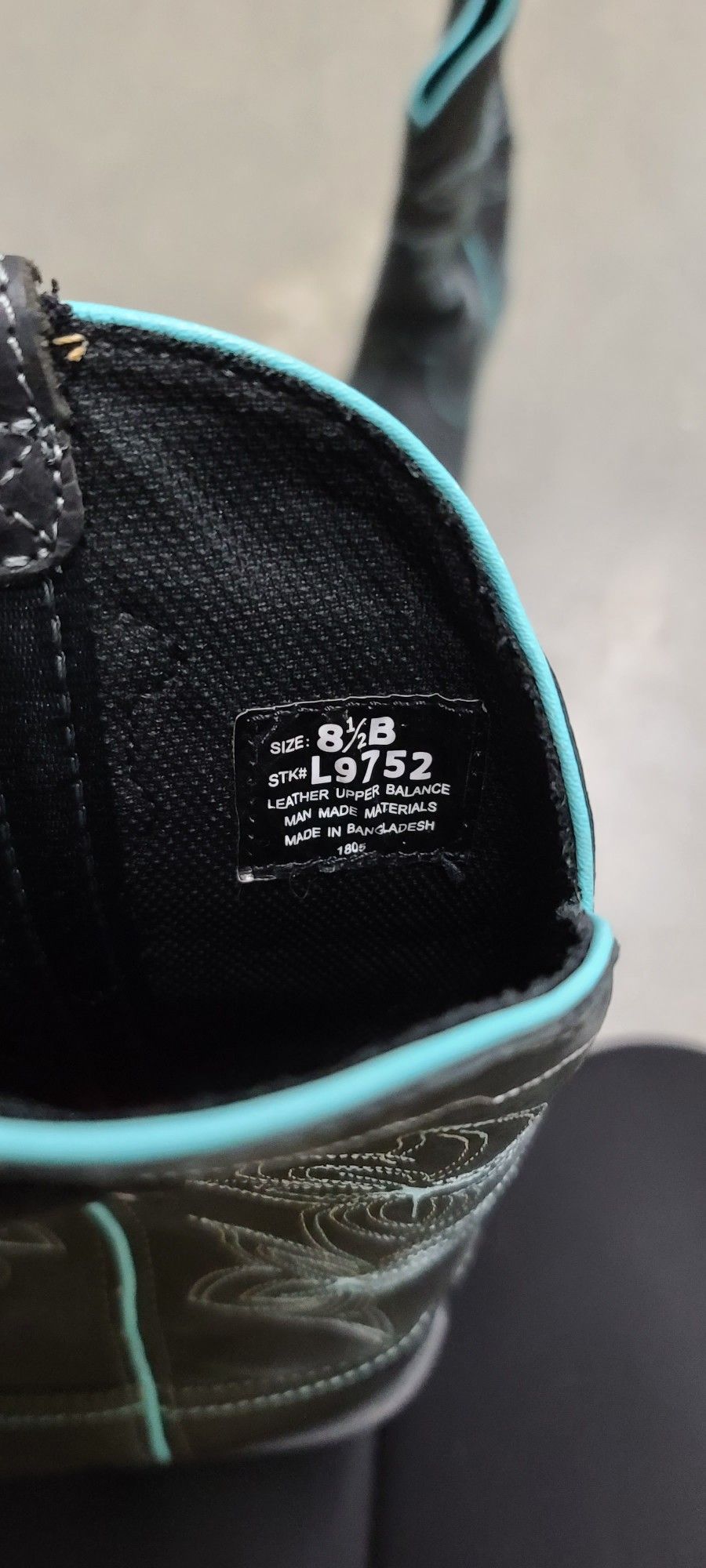 Black and teal cowgirl boots that were worn once to an indoor event that consisted of sitting. Not broken in.