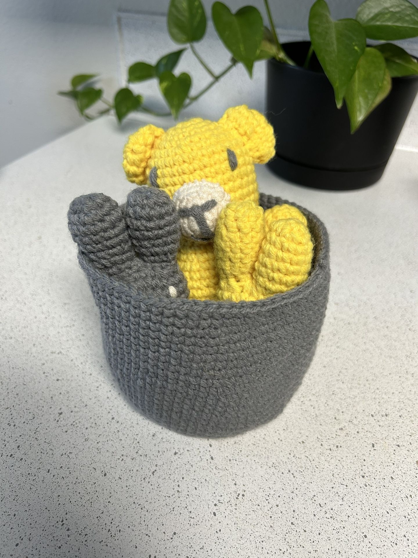 Handmade crochet teddy bear, bunny’s, and grey basket. This is an adorable set for gifting or for your own baby/toddler. These are baby safe. Everything for $5 cash or Venmo. Porch pick up in orchards Vancouver
