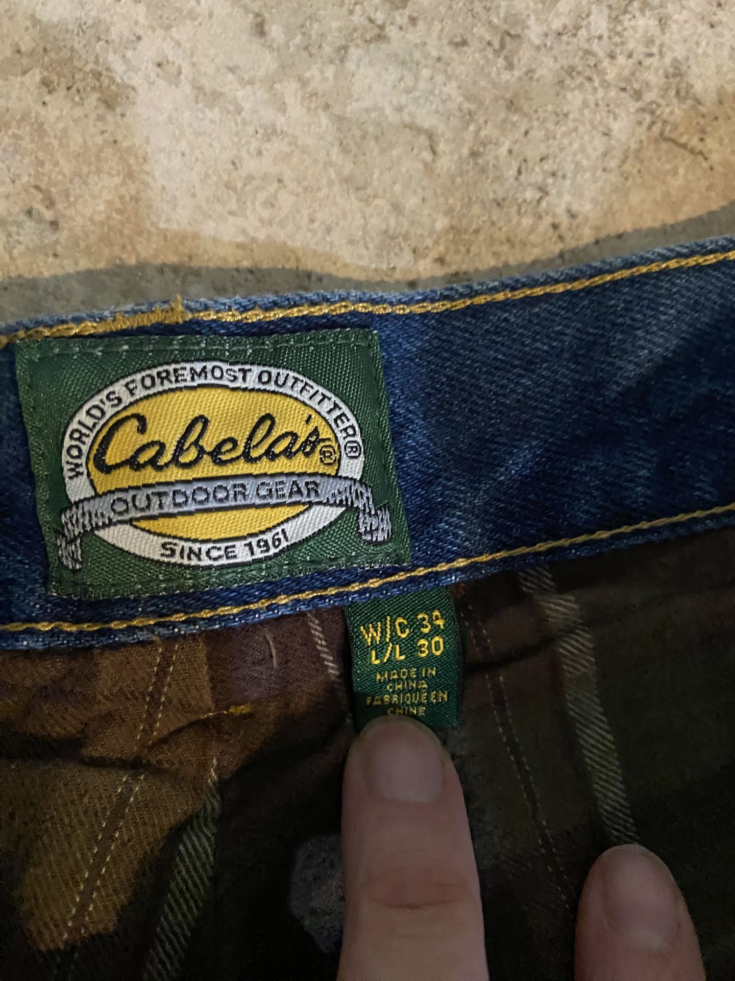Men’s Cabelas Flannel Lined Jeans Great Scarecrow Or Halloween Costume Jeans Too!