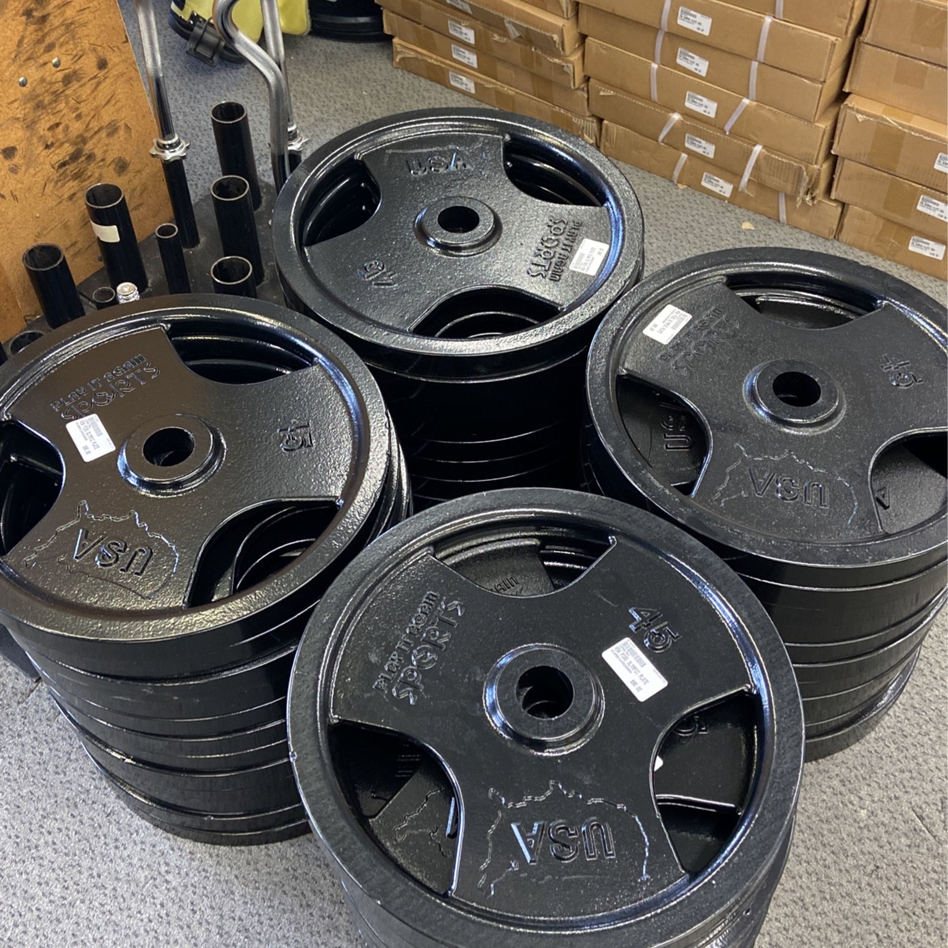 $2 per pound 45 35 25 10 5 Made in the USA brand new Olympic plates Exercise Weights Barbell