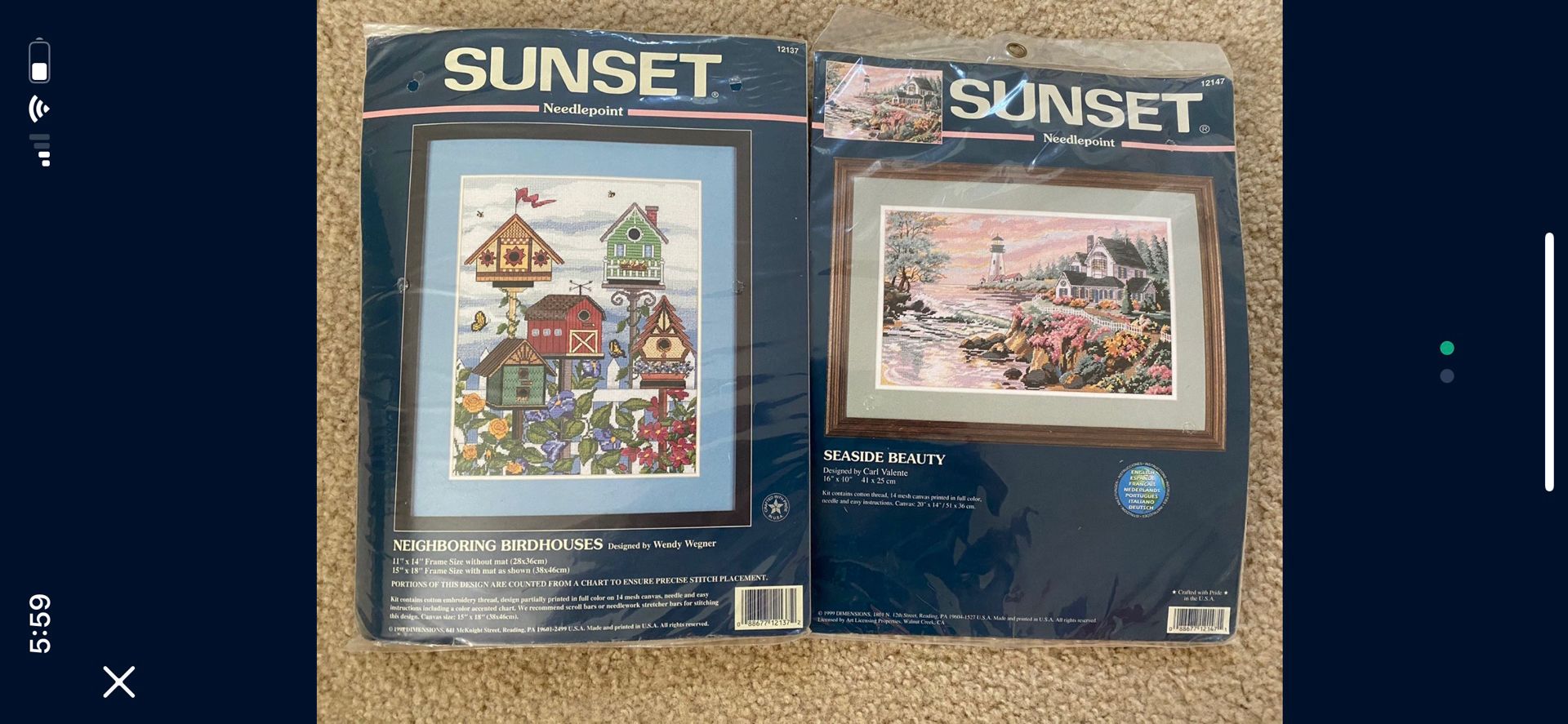 2 brand new needlepoint kits One wood frame used once No pets, non smoker home