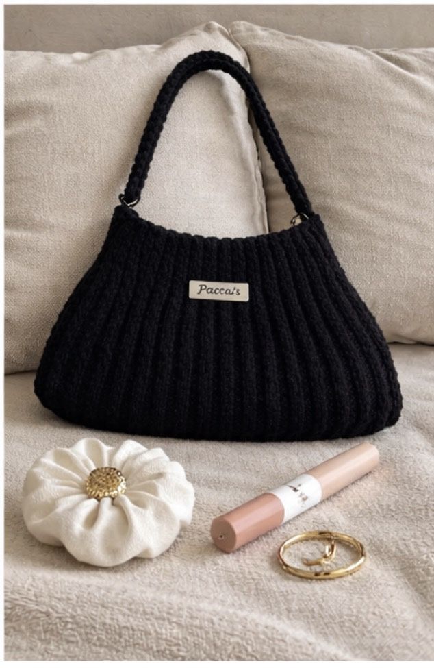 Handmade Crochet Black Bag For Everyday Use