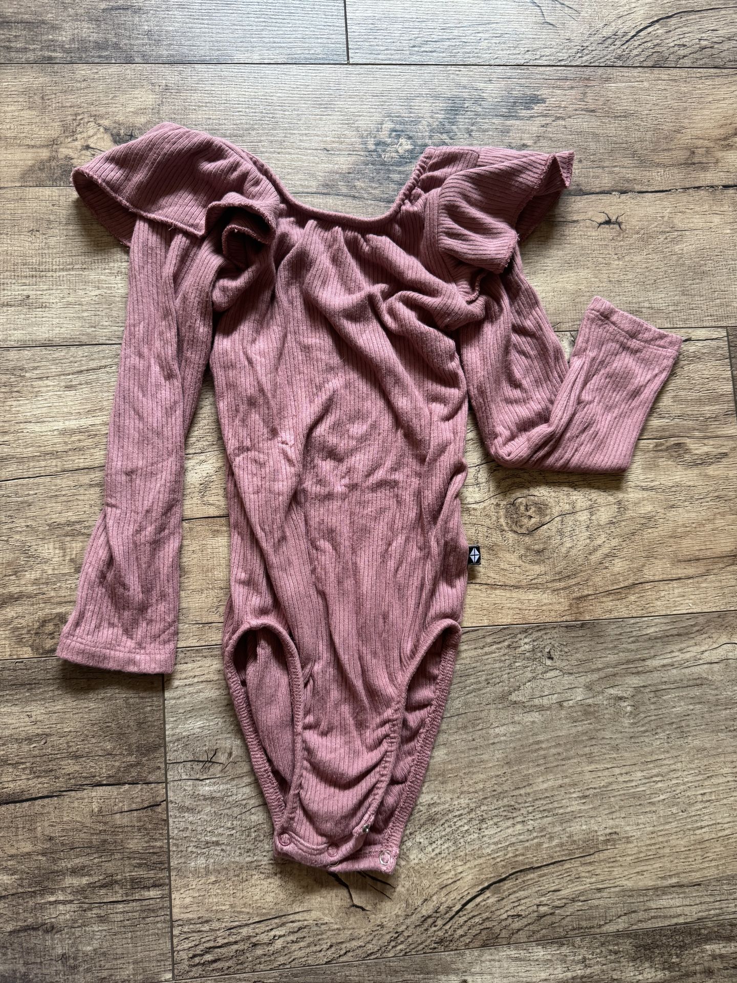 Kyte Baby ribbed bodysuit in color “dusty rose” (retired). Ruffle sleeve detail, snap closure for easy changing. Size 3T. Pick up in Vacaville or Pinole.