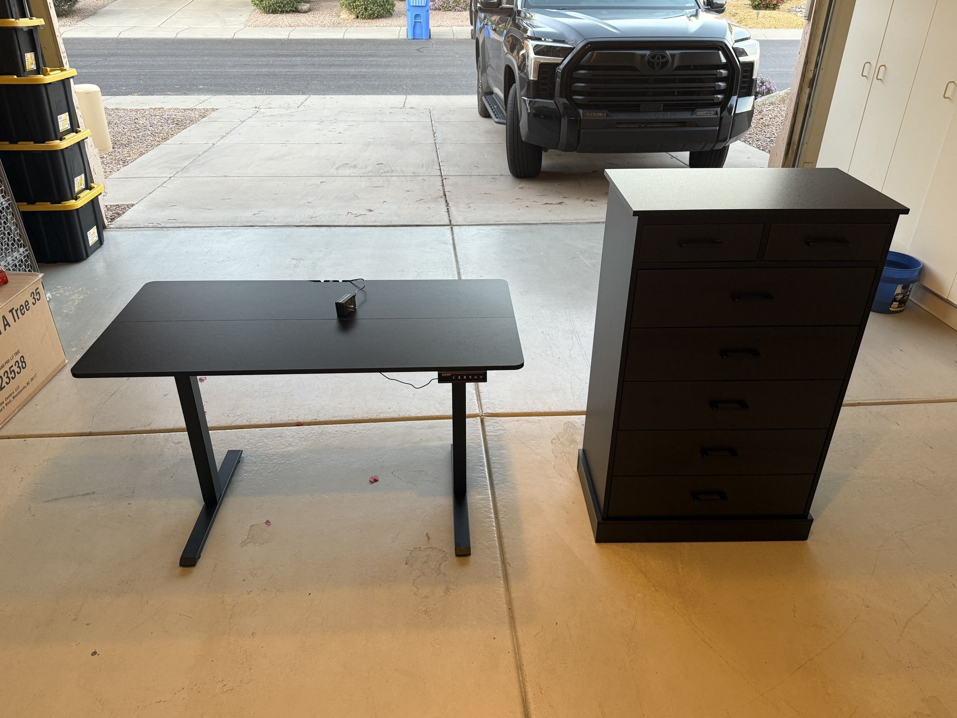 Desk- 47 “ W x 24” D Dresser- 44” H x 27.5” W x 16 “ D Both have been barely used. Very Small nick on the dresser. Both near brand new. Both have just been sitting in an extra room taking up space.