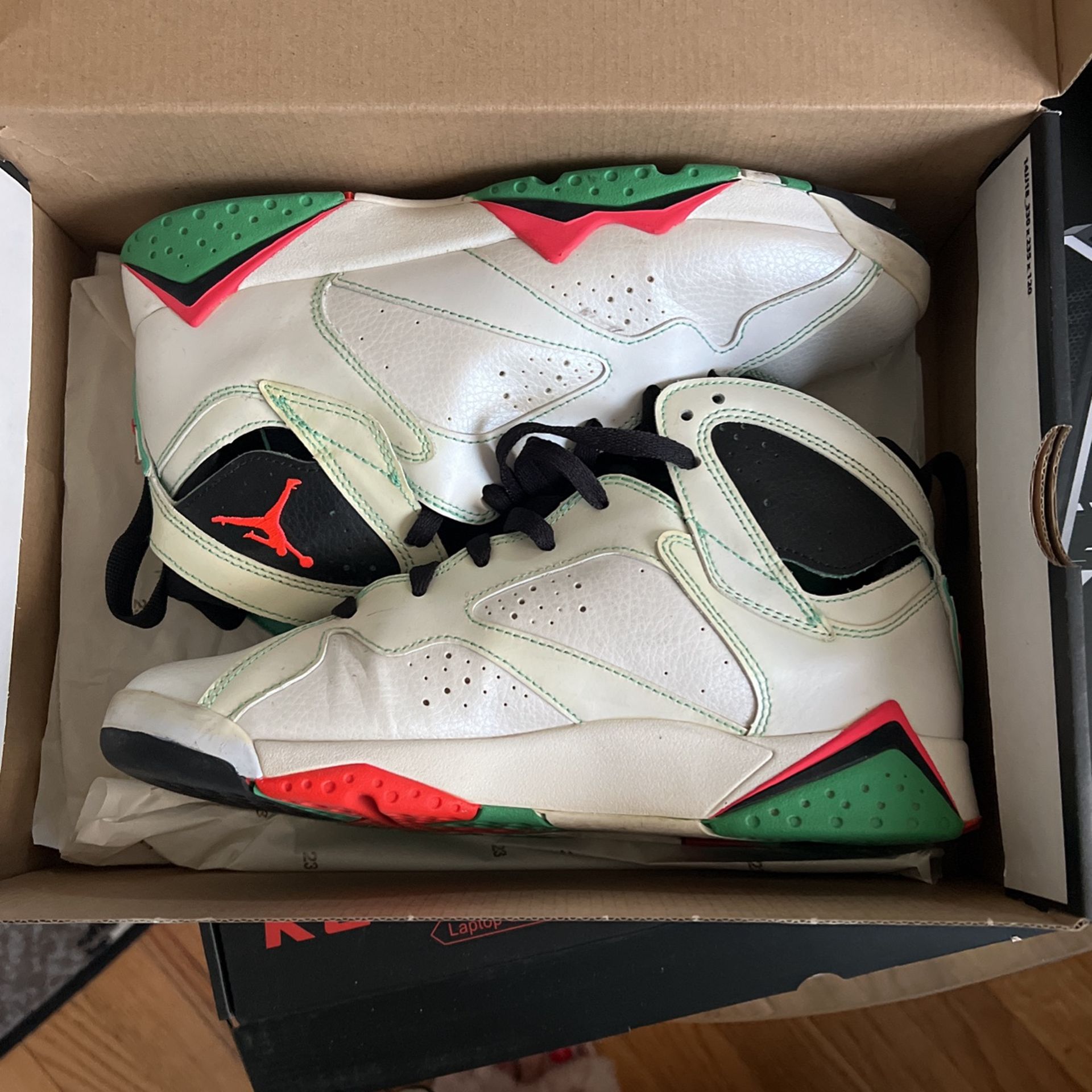 Lightly worn Jordan 7. Youth 8.5 which is equivalent to a woman’s 9.5 / 10 or a man’s 8.