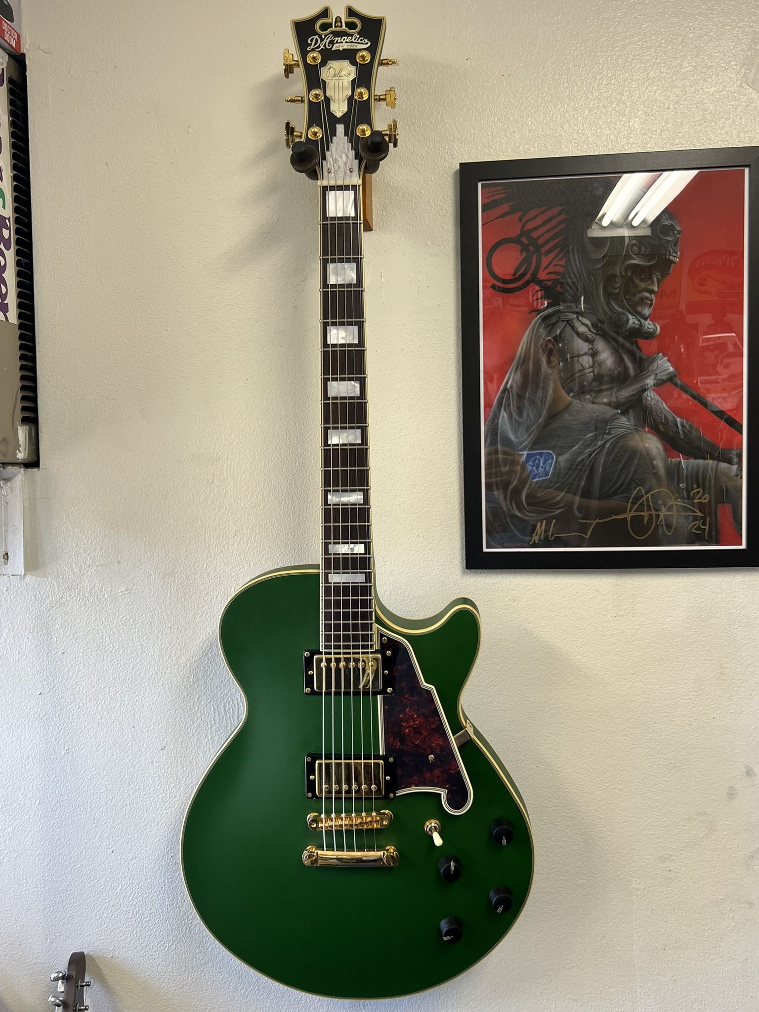 Great guitar hardly used need some $$ for the holidays Seymour Duncan 59 pickups freeway toggle switch single coil and full humbucker sounds very versatile guitar light weight matte emerald green comes with hard case very similar to Gibson Lucille sound and feel “Ignore” Gibson fender es335 strat telecaster custom shop