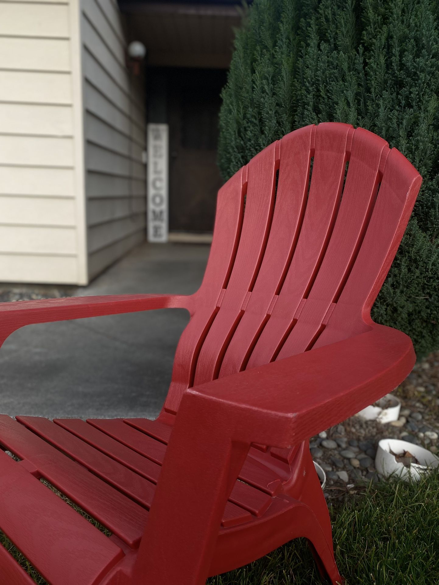 Bright and comfortable red Adirondack chair in great used condition. Perfect for patios, porches, or backyard setups. Durable, relaxing, and easy to clean. This color looks amazing outdoors and adds a pop of personality to any space. Chair only — décor not included. Price: $18 OBO Pickup in Tri-Cities.