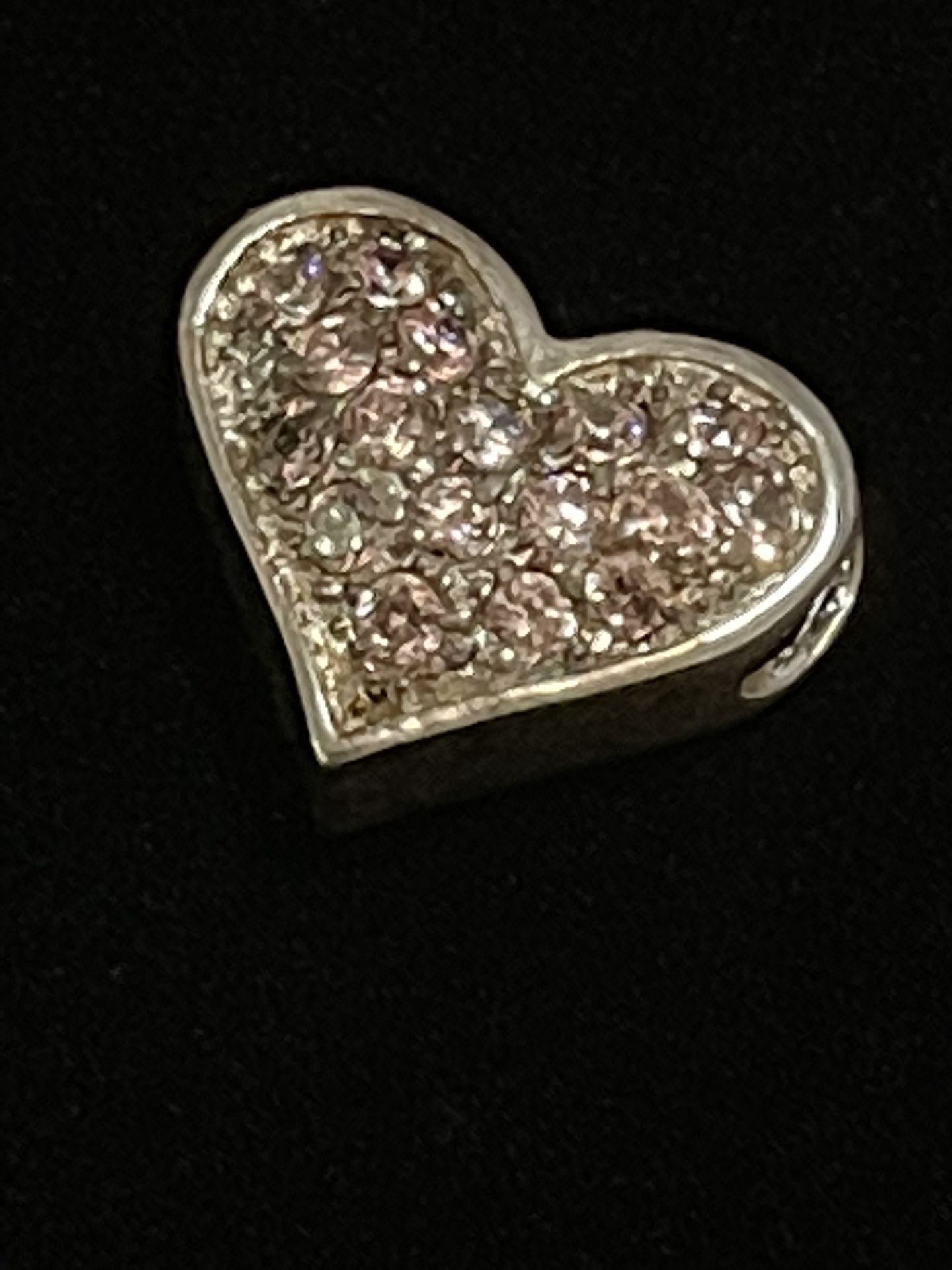 Sterling silver, stamped 925, pink zircon stones. Heart pendant, much prettier in person!
