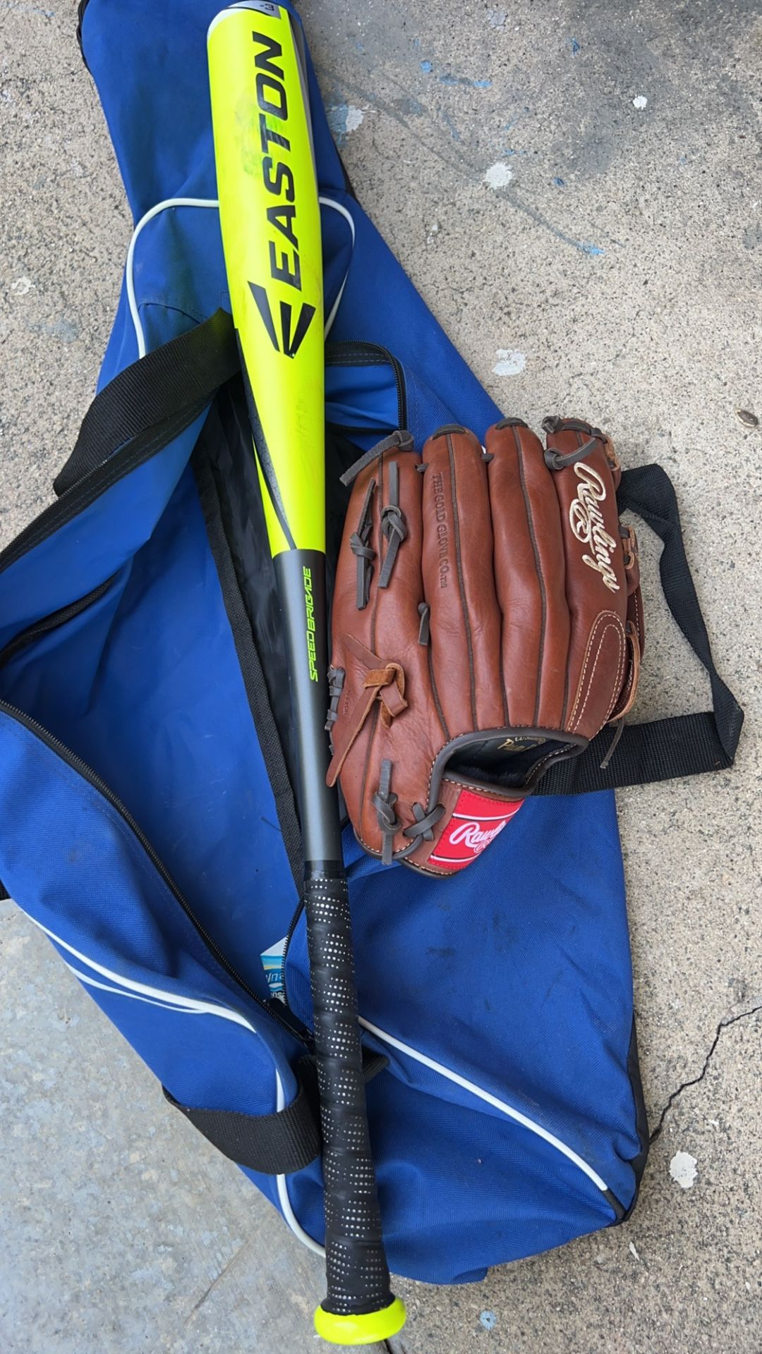 Baseball bat and glove used couples times $120 Glove 12 1/2 in