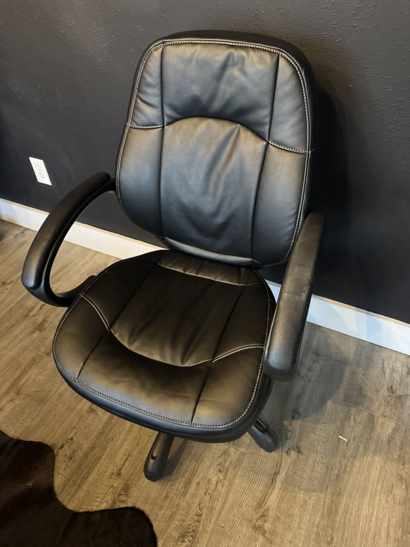 I have 2 black leather office chairs, one has some wear on the arm rest. $60 each or both for $100