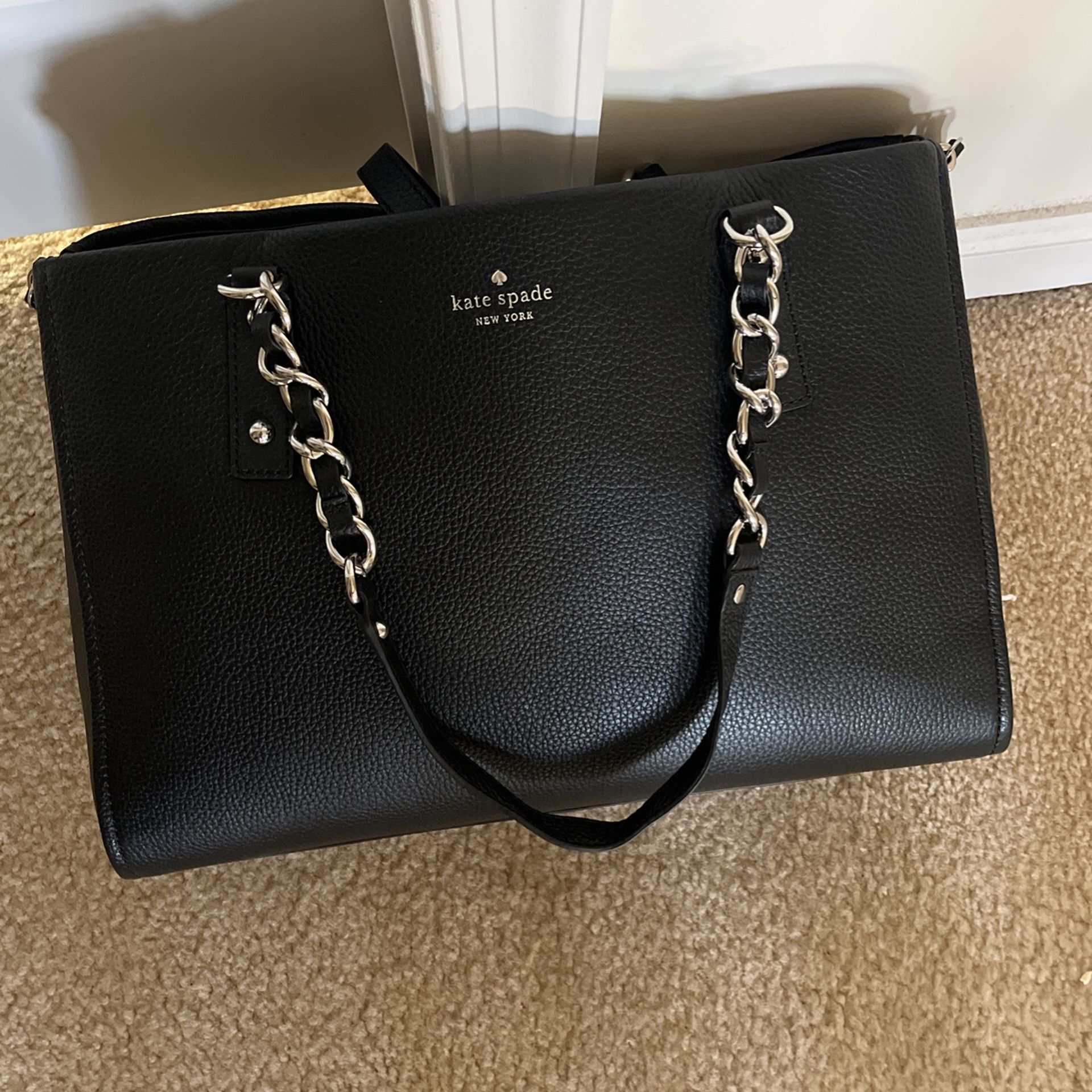 This bag is brand new - never used or worn. Excellent condition. Two side silver tone zips to expand. One inside zip pocket. Silver tone and leather shoulder handle. Perfect for everyday, work and travel. None smoker.