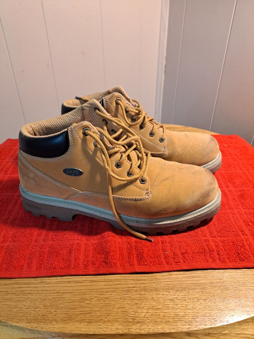 NY LUGZ CO LIGHT BROWN SUEDE BOOTS SIZE 12 somendirt on the front end. Clean inside. Soles like new.