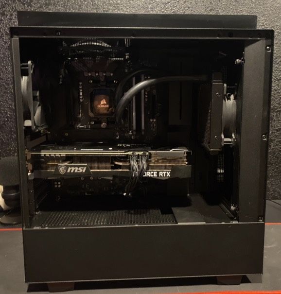 windows high end pc 5pecs gpu-3070 tl ventus 3x oc cpu-amd ryzen 9 5900x power supply -650watts ram -corsair 16x2 gb mother board -msi b550 gaming plus ssd -237gb 2 sata hard drives 1tb-5tb dont know exact amount case -Nzxt H510 water cooled cpu corsair h60 2 small 120 mm cooling fan