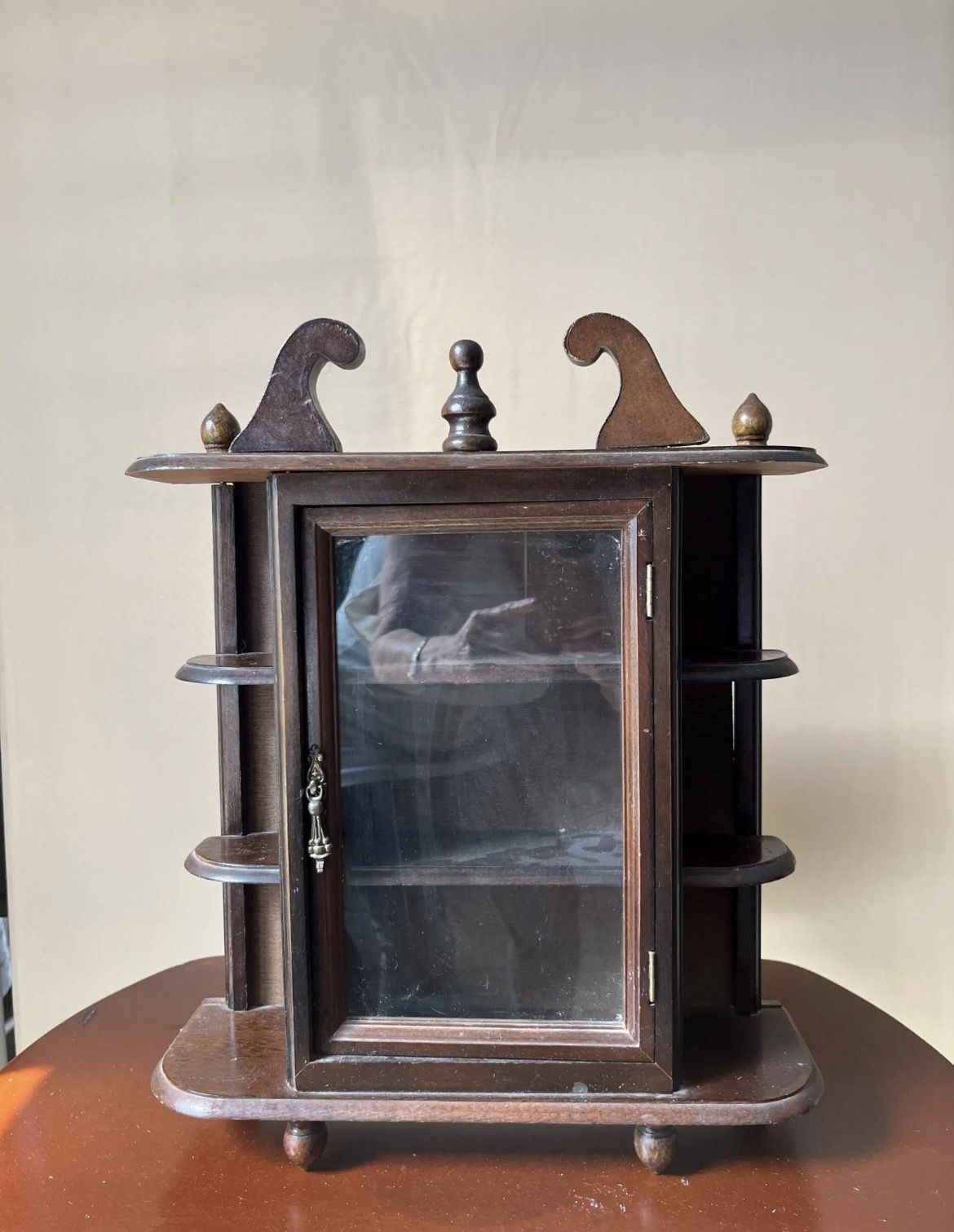 Vintage Cherry Wood Curio Shelf | Glass Door Miniature Display