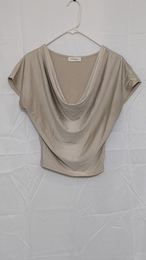 Attirance Beige Shimmer Cowl Neck Top - Size Medium
