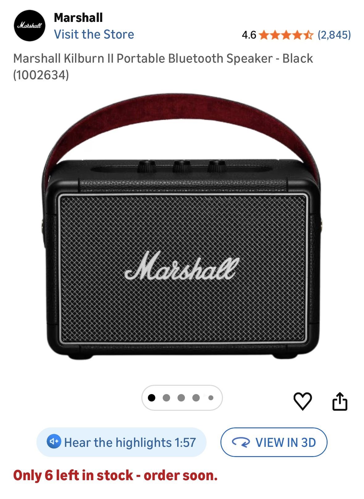 First come first serve. Marshall Kilburn II Portable Bluetooth Speaker - Black and Brass: 20+ Hours of Portable Playtime Marshall Signature Sound for Perfectly Balanced Audio Rugged and Durable Bluetooth Connectivity and Multi-Host Functionality Analogue Control Knobs