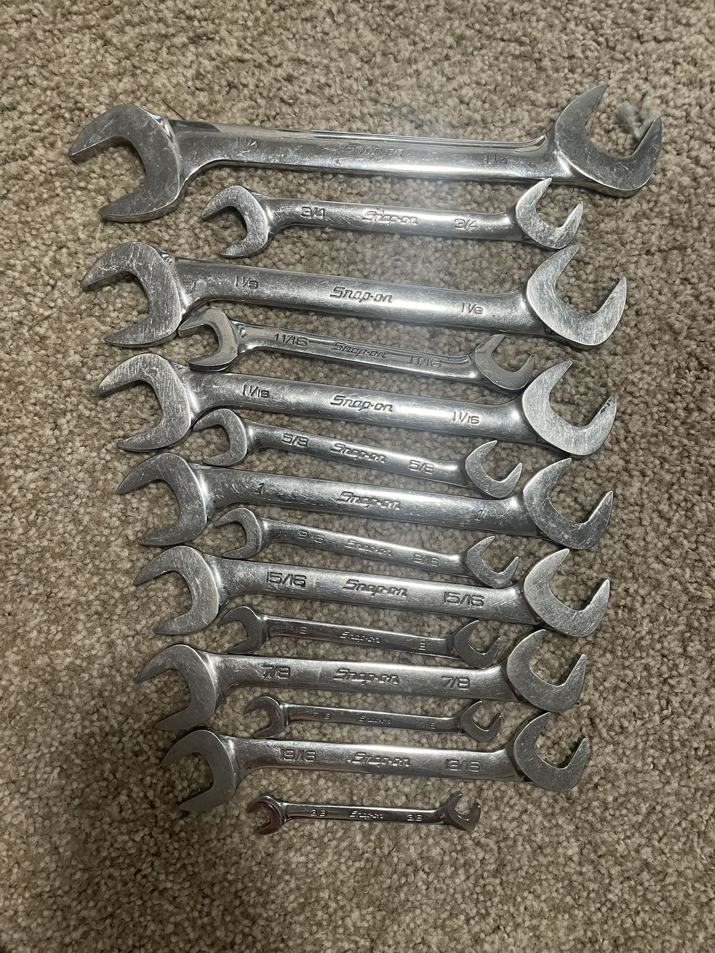 14 SAE open end four way wrenches 1 1/4 through 3/8. VS40B Great shape, no rust. Snap On, Snap-On, tool, tools, mechanic, Mac, 4 way