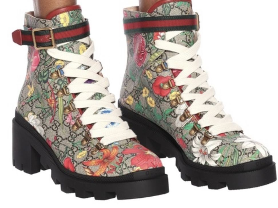 Gucci GG Floral Ankle Boots Multicolor shoes calf high Supreme Combat heels
