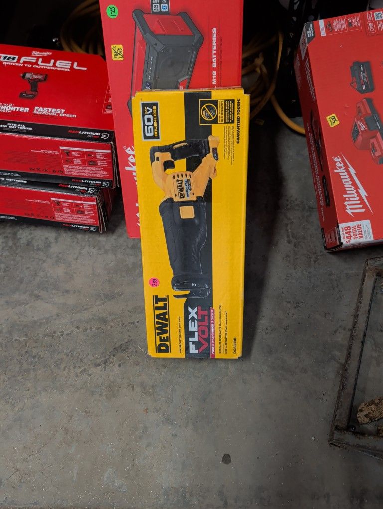 Brand new dewalt 60 v. Flexvolt reciprocating saw....no battery no charger included..$190 firm price pick up in Nashua NH Click my profile I have lot tool and battery I am tool resealer I buy in production or combo kit and resale individually...have all my receipts.. No more additional discounts if buy more then one tool ty