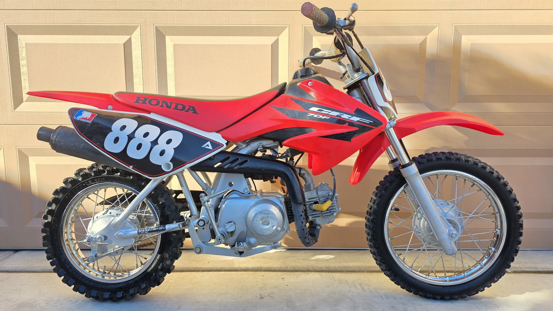 Selling our son's Honda CRF70F as he has outgrown it. This is a wonderful learner bike for younger kids, and still a fun pitbike for adults. The centrifugal clutch and 4 speed transmission is easy to learn, no complicated hand clutch. Kickstart only, very easy to start and not cranky when cold. New rear tire. No stories, just add gas, ready to ride. Clean Nevada title in hand - a rarity for these bikes. Trades welcome for 110/125/140 4-strokes, or 85-150cc 2-strokes. Can add cash if needed.