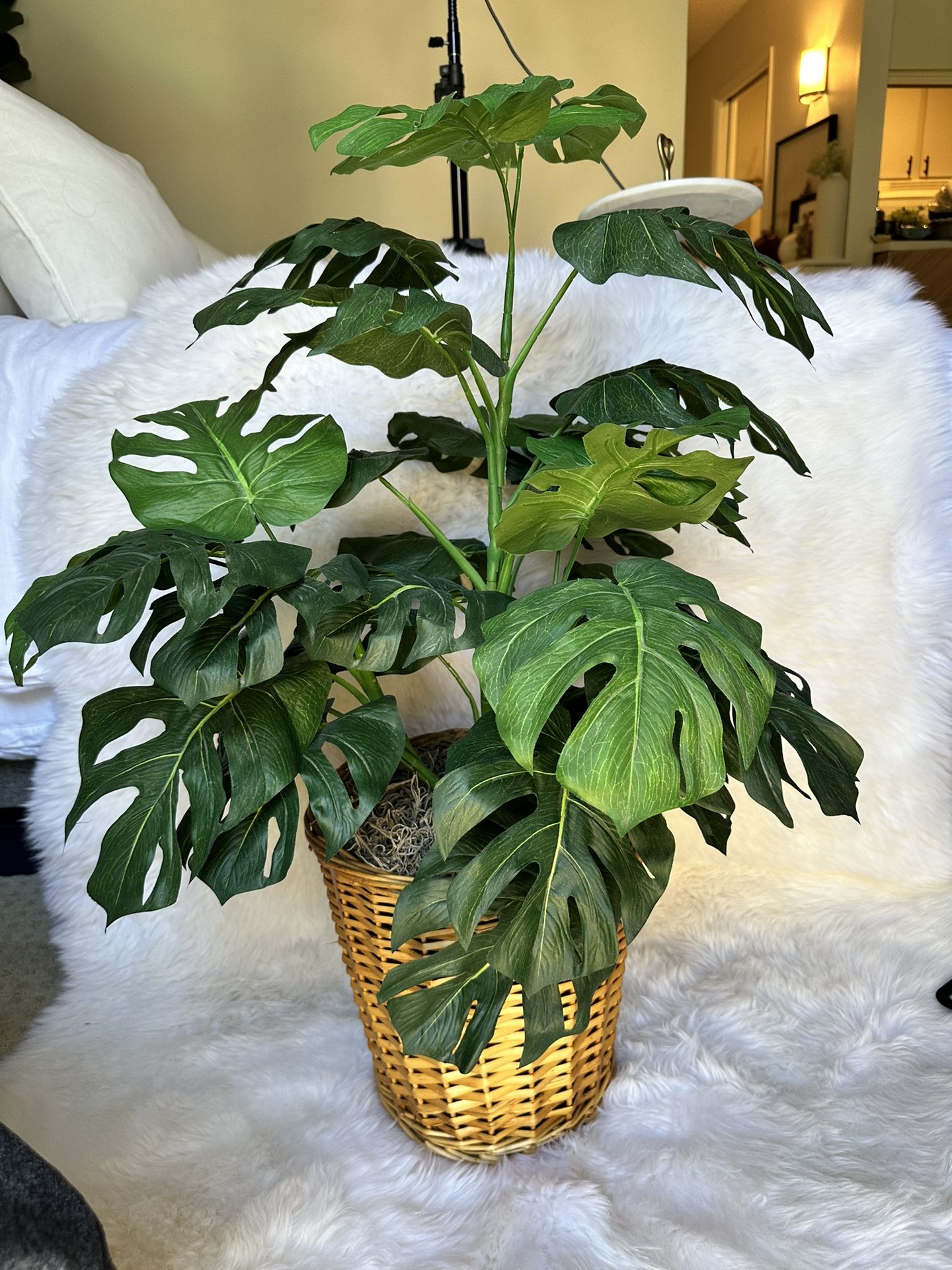 Monstera Faux Plant in basket. Just under 3ft, basket is about 1ft. Really nice looking faux plant. *located right by fashion valley mall *cash or Venmo