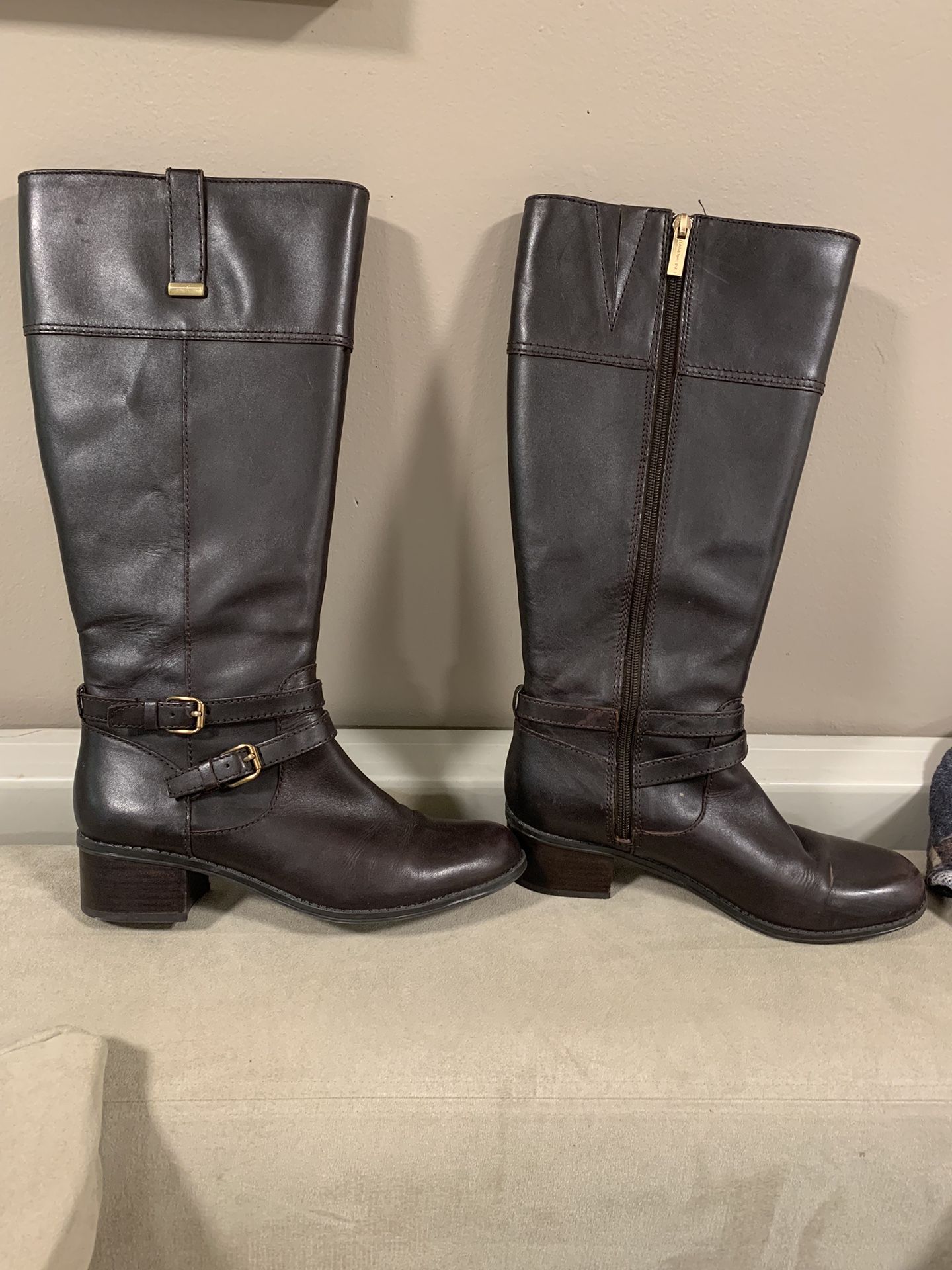 $ 25 each pair Black and brown boots are Bandolino size 7.5 wide calf Camel colored boot is Alfami size 8 wide calf Hardly worn.
