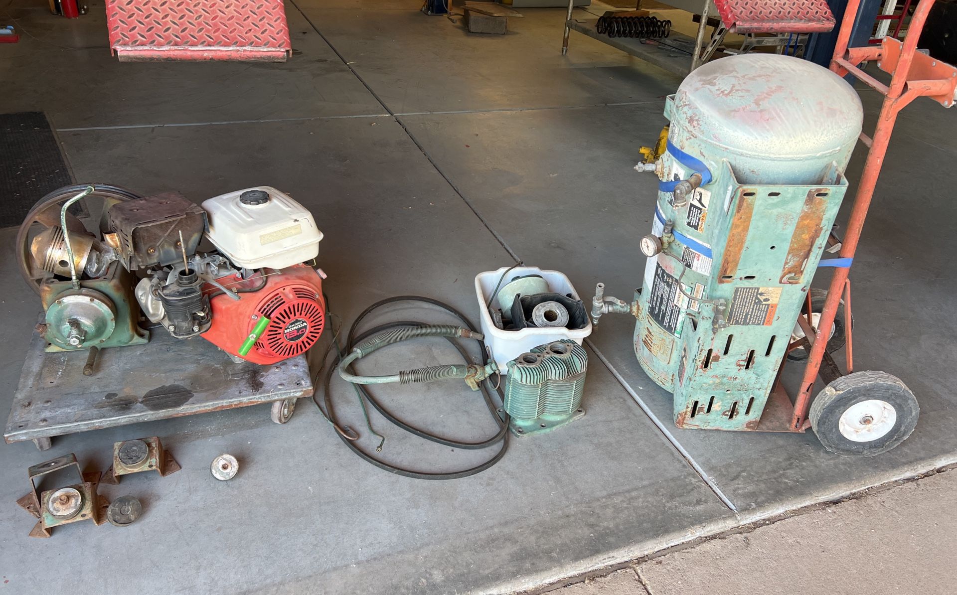 Champion advantage 13 hp Honda air compressor. Has a 30 gallon tank. The pump needs rings and valves and the gas engine needs a fuel shut off valve. This unit is $7000 new