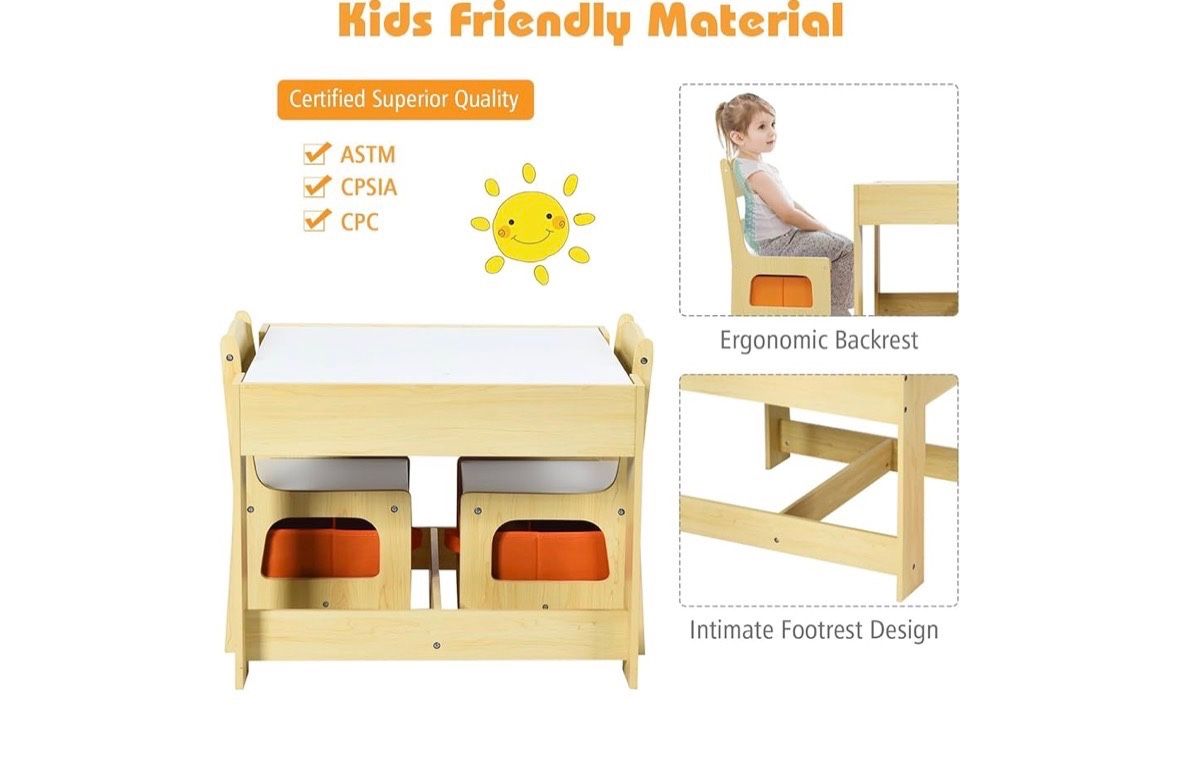 Costzon Kids Table and Chair Set, 3 in 1 Wooden Activity Table with Storage Drawer, Detachable Tabletop for Children Drawing Reading Art Craft, Playroom, Nursery, Toddler Table and Chair Set, Natural $50