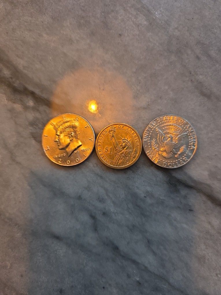 1 Dollar Coin And Half Dollar Coins