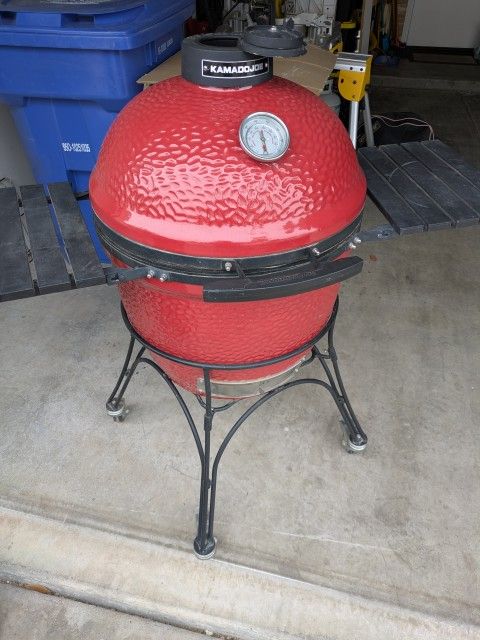 Kamado joe classic; comes with all accessories. Rolling/locking stand, divide and conquer multi-level racks, cast iron grill/sear plate, pizza stones and a cast iron wok that is brand new. Priced fair to move, no low offers.