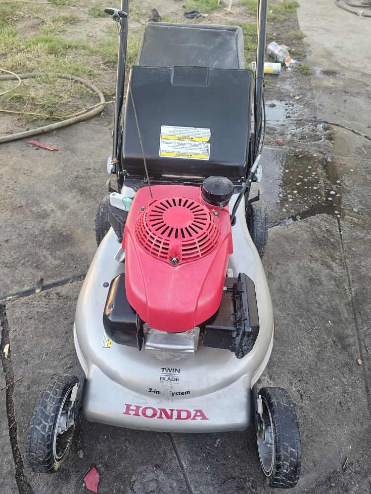 Honda self propelled lawn mower with rear wheel drive and double blades starts on first pull and runs great ready to use