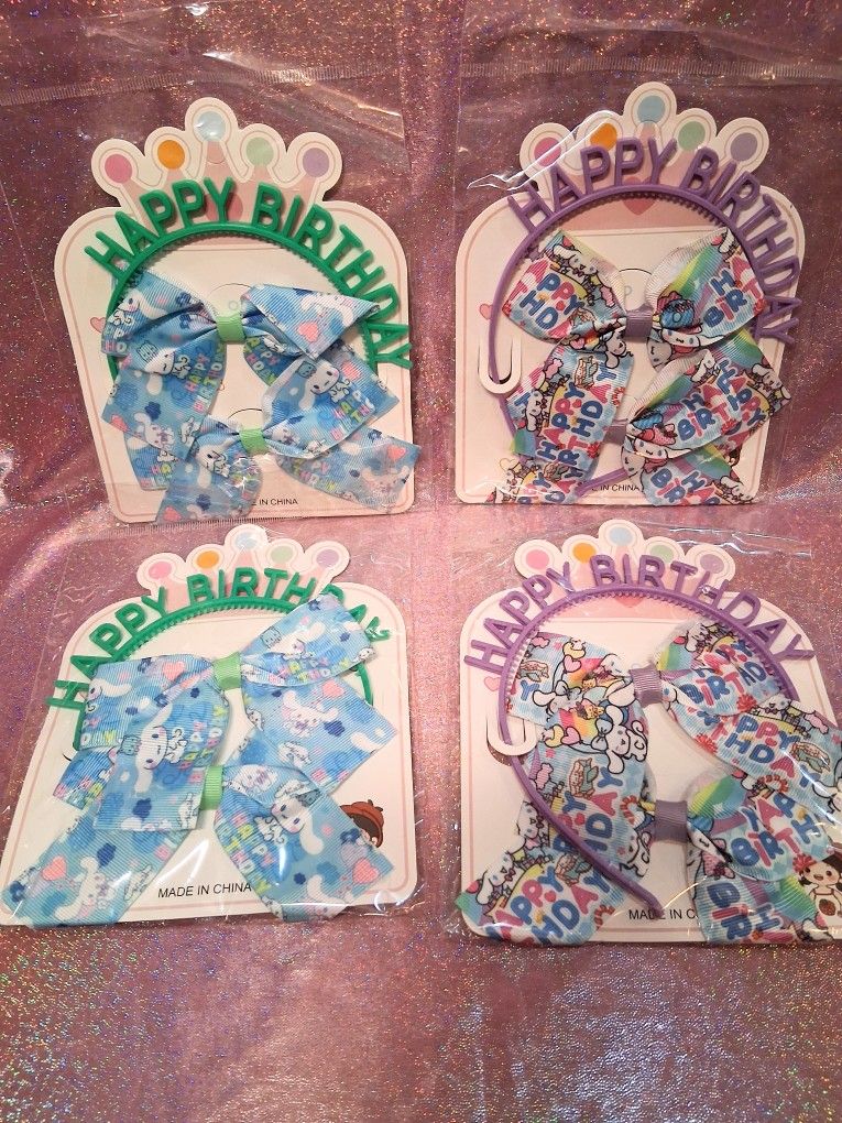 New Cinnamoroll "Happy Birthday" Head Band & Hair Bows - $3 Each