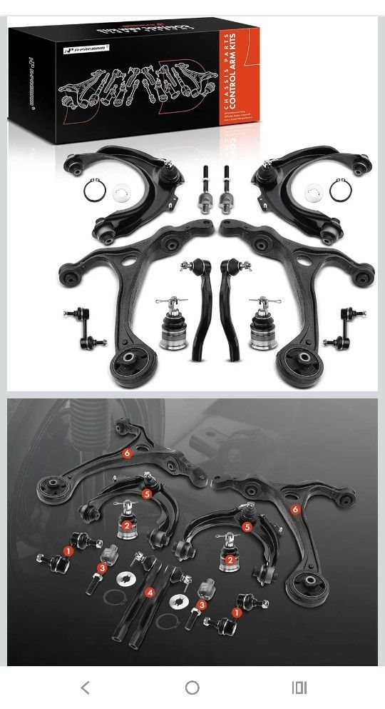Front upper and lower control arms, ball joints, tie rod ends, swaybar links, all brand new. Fits Honda Accord 2007-20012
