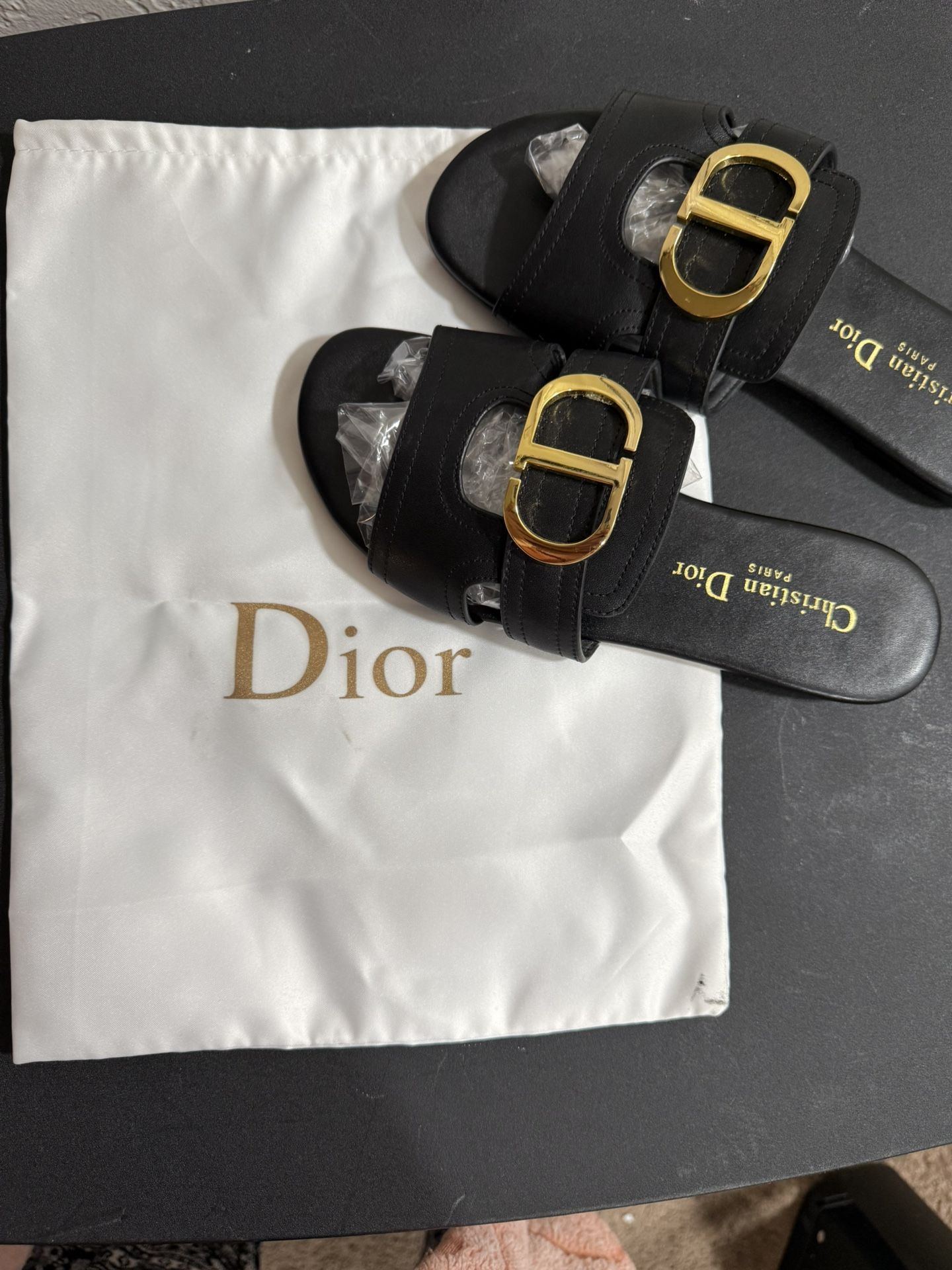 Christian Dior Montaigne Black Calfskin Slides Size 37 Size 6.5 U.S
