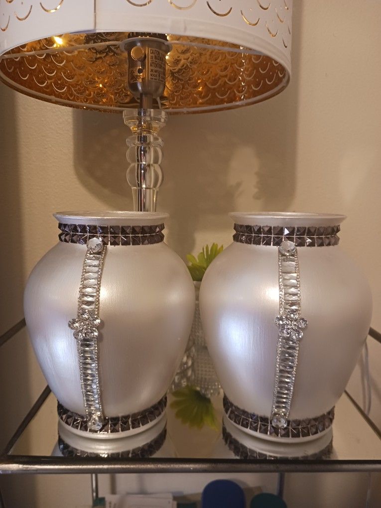 2PC PEARL SILVER AND BLCK N DIAMOND DECOR VASE SET