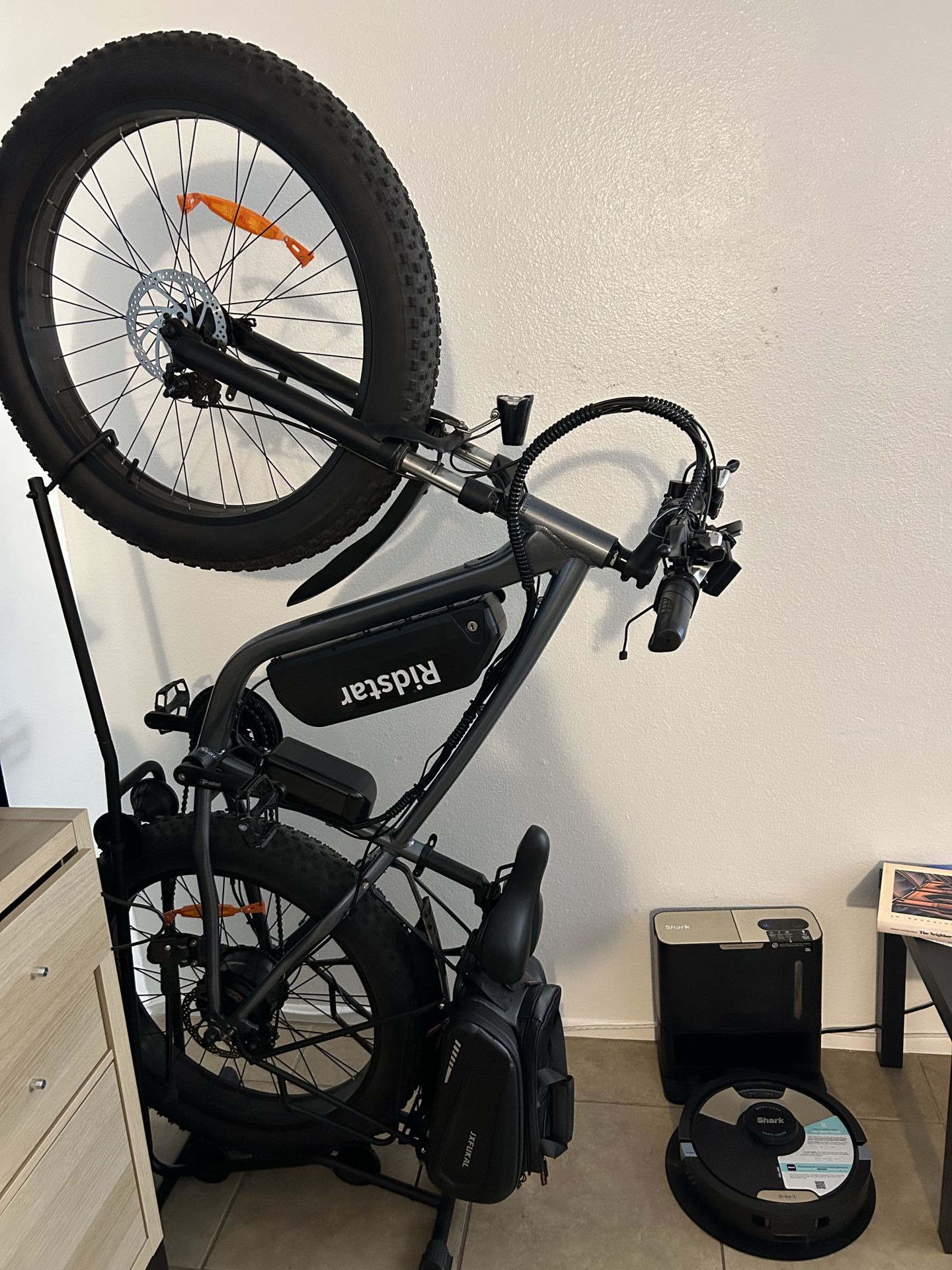 RidStar E-Bike bought off Walmart. In great shape. Had a tune up not too long ago. A little over 200 miles on it. Comes with a stand, a Bluetooth helmet, Extra Battery and charger, Extra Wheels, a tire pump, a Bike Lock, 2 different saddle bags, and replacement electronics. Essentially you’re getting 2 bikes for one. Bike by itself was worth $950. Looking for $800