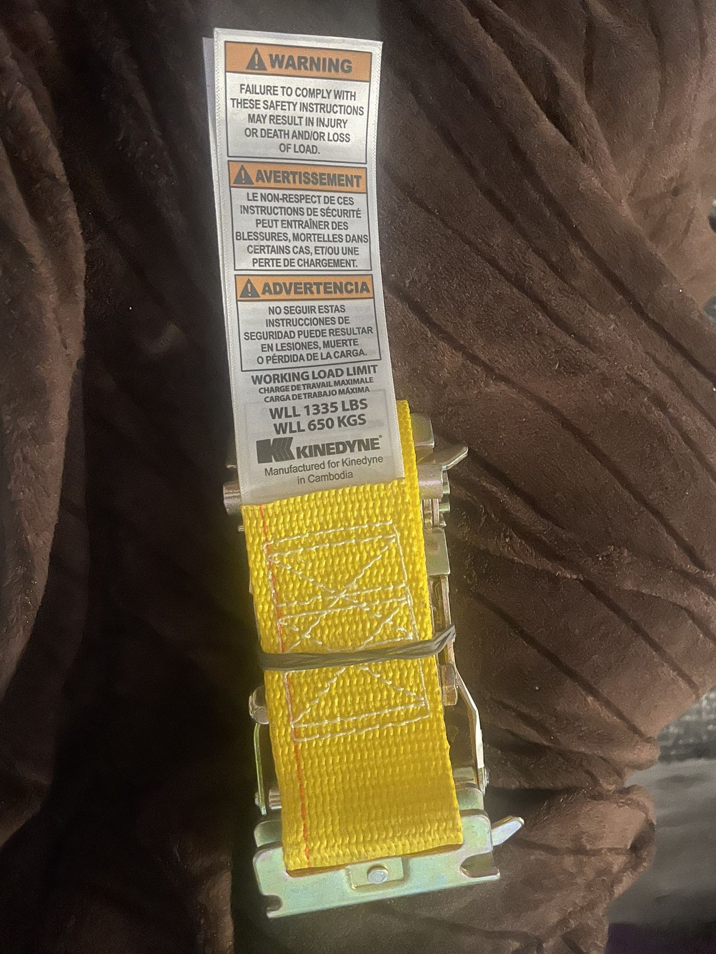 5 Kinedyne Ratchet Straps: $15.00 each. Working load limit 1335 lbs (650 kgs). Never used. Tracy CA