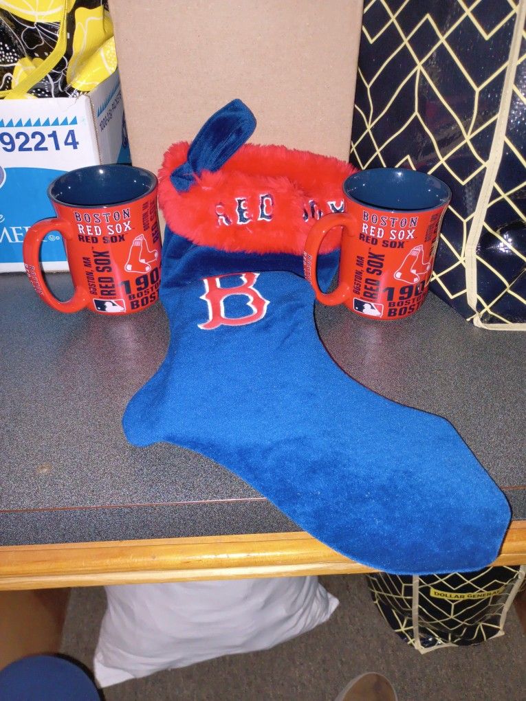 SPECIAL Boston Red Sox Stocking With 2 Collectable Mugs
