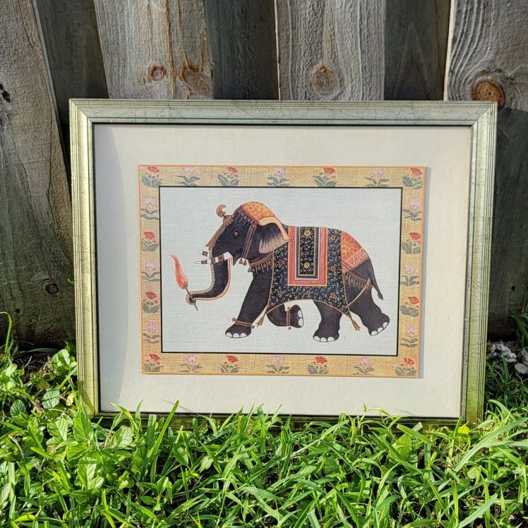 Unique Vintage Elephant Trunk Up Indian Artwork