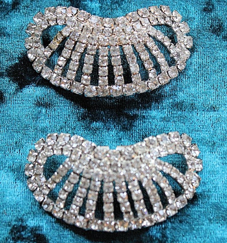 Vintage Rhinestone Over The Top Shoe Clips 2” long 1” wide Great Condition